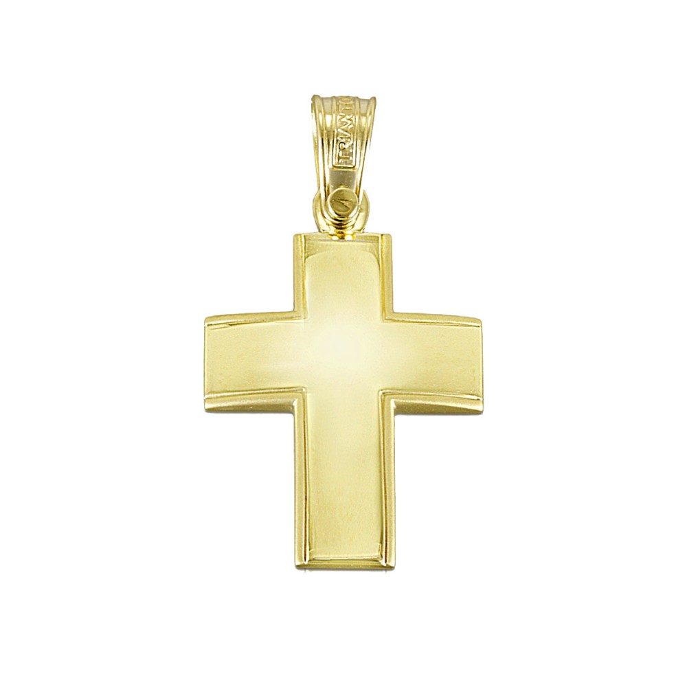 Σταυρός Τριάντος από κίτρινο χρυσό 14 καρατίων με λουστρέ επιφάνεια.