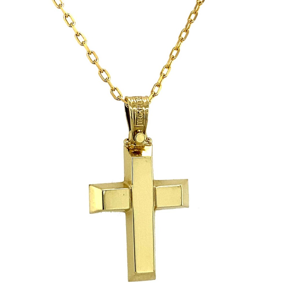 Σταυρός Τριάντος βάπτισης για αγόρι από χρυσό 14Κ με λουστρέ επιφάνεια.