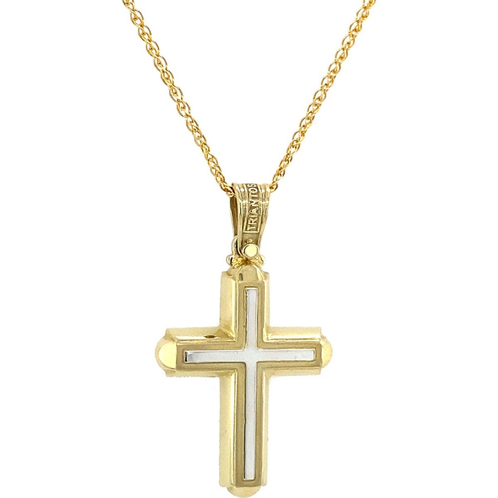 Σταυρός Τριάντος από δίχρωμο χρυσό 14Κ με επιφάνεια λουστρέ.