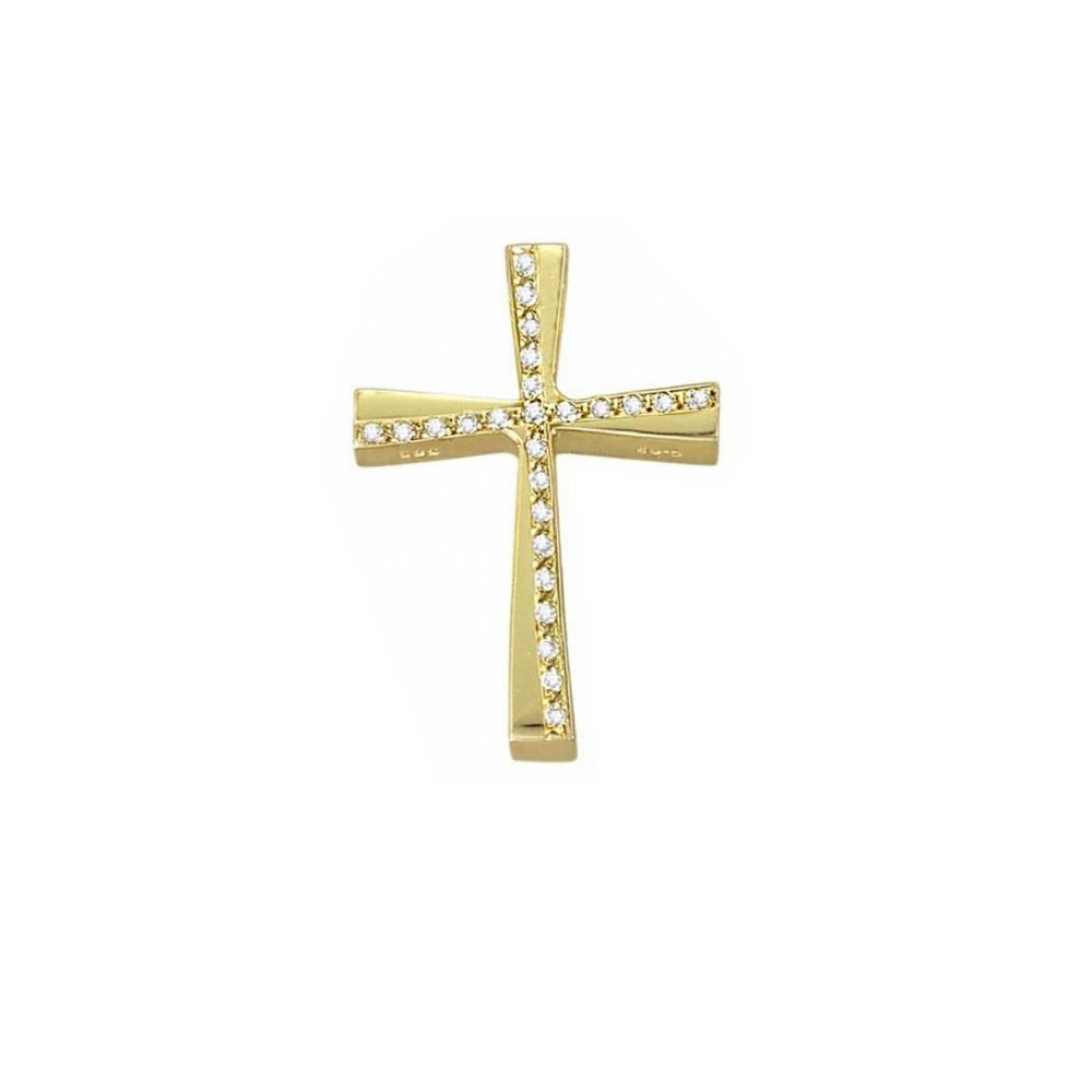Σταυρός Τριάντος από κίτρινο χρυσό 14 καρατίων με λουστρέ επιφάνεια και ζιργκόν.
