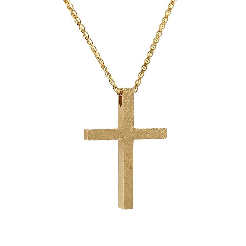 Σταυρός βάπτισης ανδρικός με αλυσίδα από χρυσό 14Κ και η επιφάνεια του είναι ματ-σατινέ.
