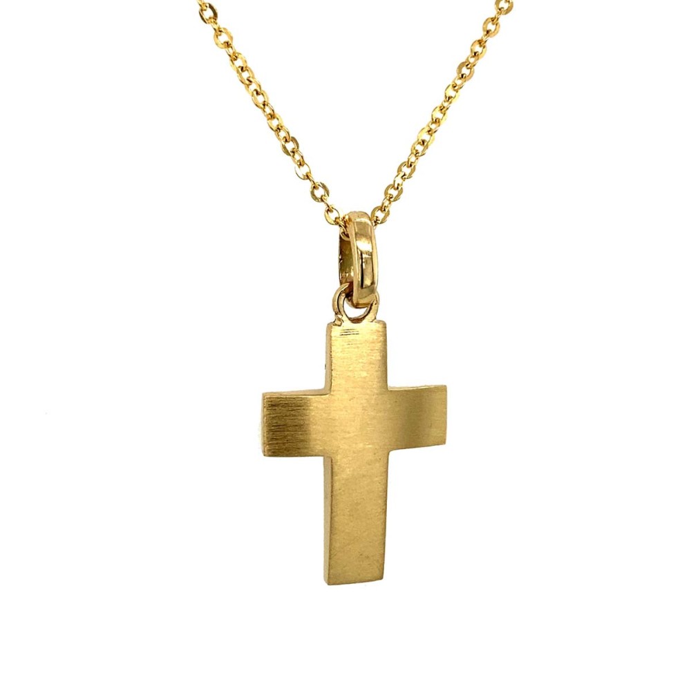 Σταυρός βάπτισης για αγόρι από χρυσό 14Κ με ματ σατινέ επιφάνεια.