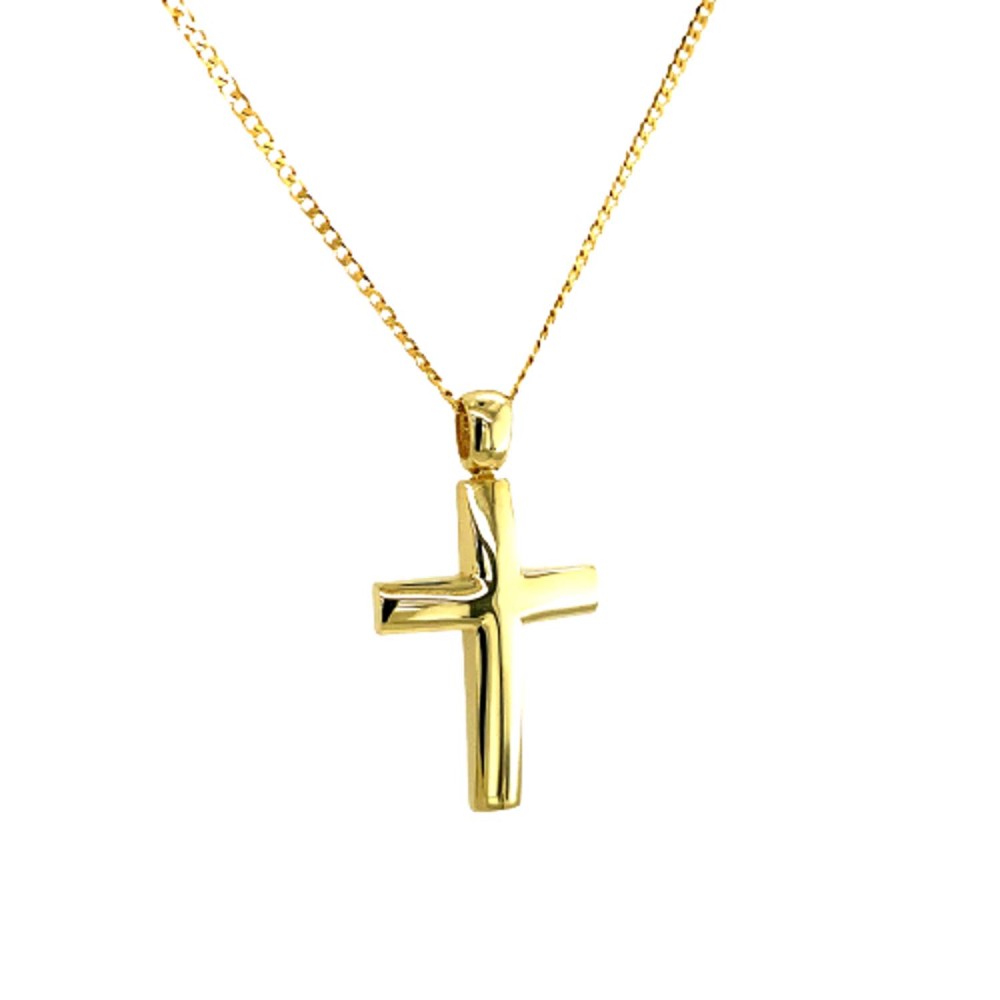 Φύλο: Ανδρικό, Μέταλλο: Χρυσός 14Κ, Χρώμα: Κίτρινο, Φινίρισμα: Λουστρέ, Βάρος: 2,3gr, Διαστάσεις Σταυρού: 3,1cm x 1,7cm