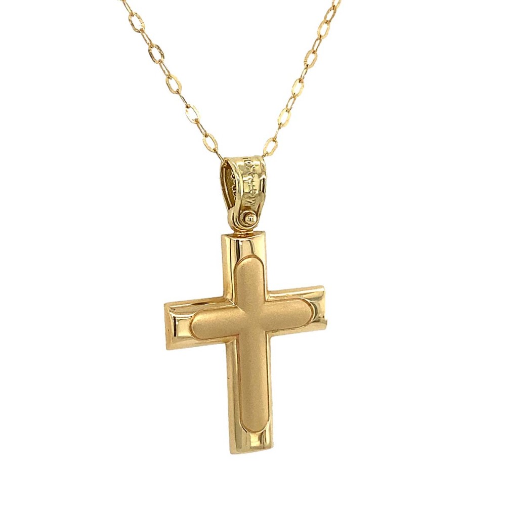 Σταυρός βάφτισης για αγόρι από χρυσό 14Κ με επιφάνεια ματ σατινέ-λουστρέ.