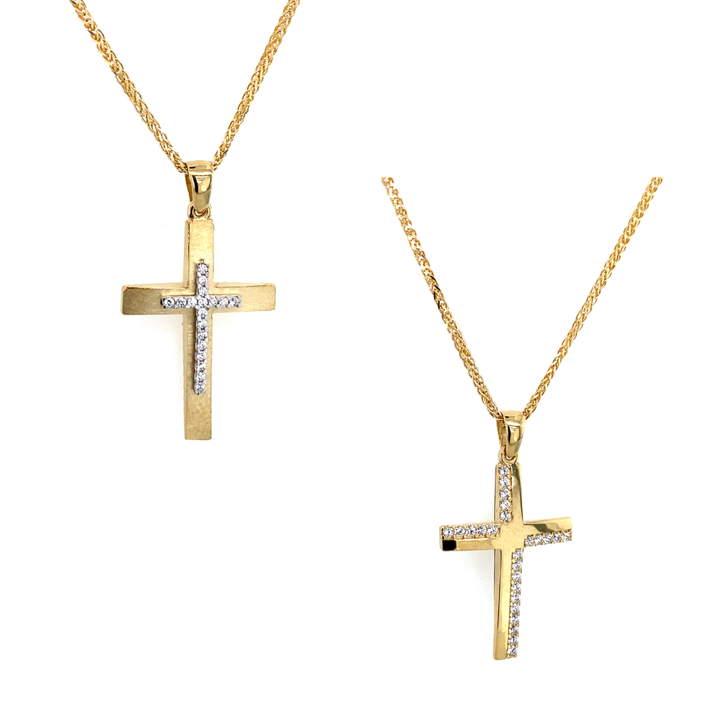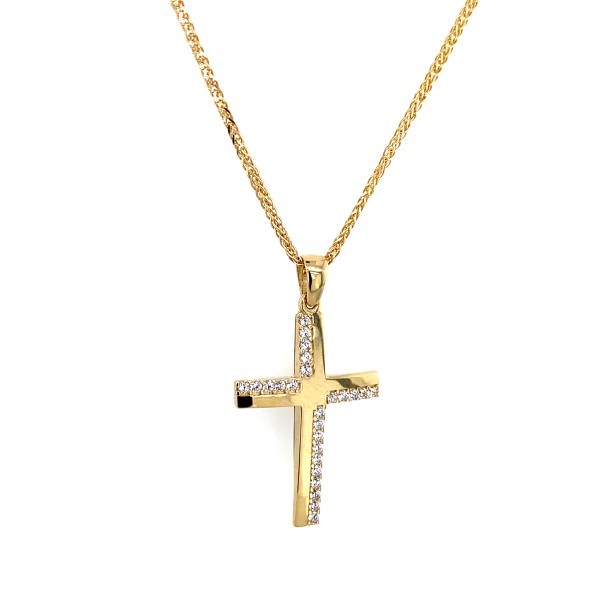 Σταυρός βάπτισης για κορίτσι από κίτρινο χρυσό με πέτρες ζιργκόν 14Κ διπλής όψεως.
