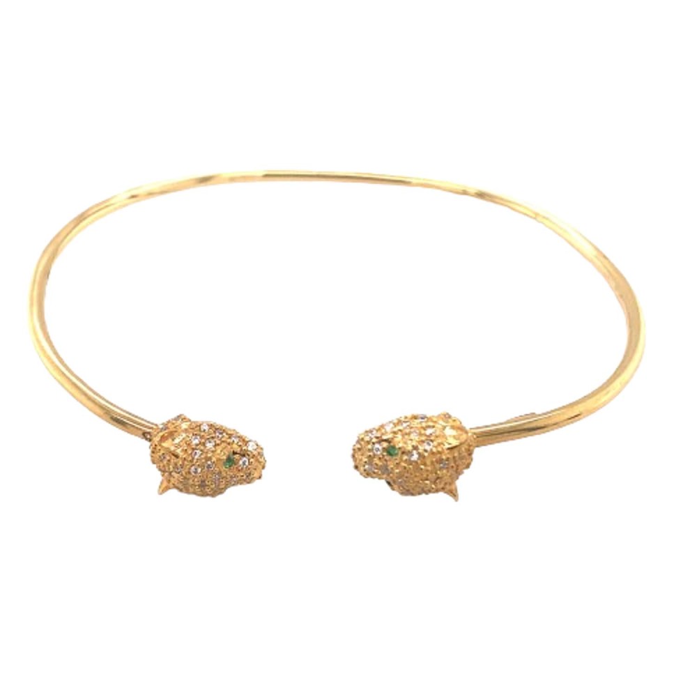 Γυναικείο βραχιόλι σχέδιο Πάνθηρας από χρυσό 14 καρατίων με πέτρες ζιργκόν.