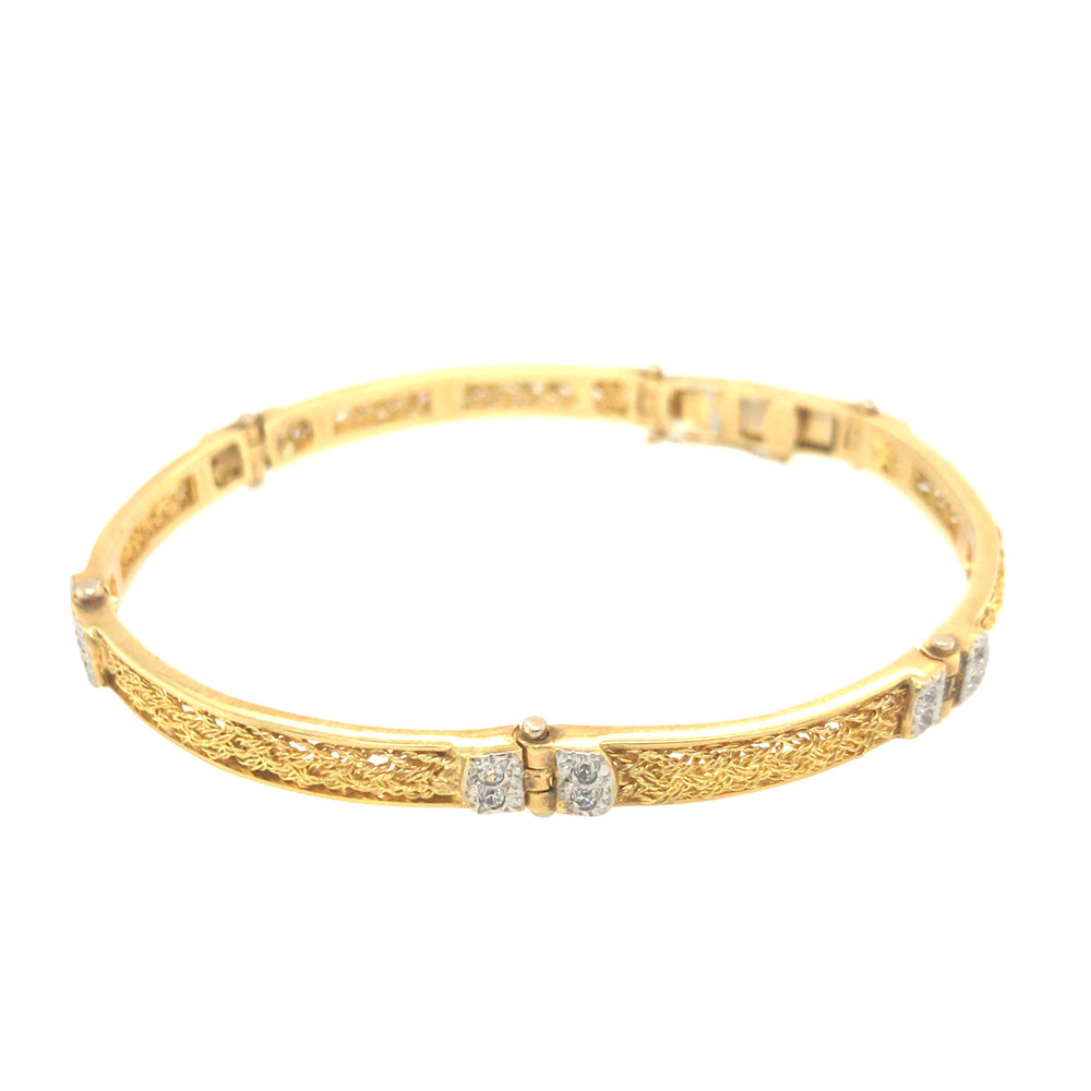 Γυναικεία Χειροπέδα Βραχιόλι από μασίφ Χρυσό 14Κ σε ένα εντυπωσιακό σχέδιο με πέτρες ζιργκόν.