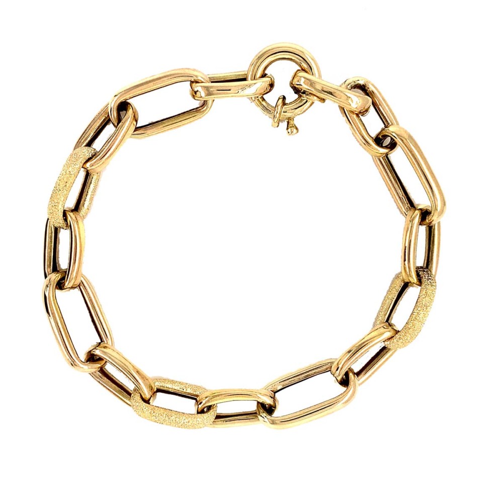 Βραχιόλι αλυσίδα από χρυσό 14Κ με λεπτομέρειες σε σαγρέ φινίρισμα.