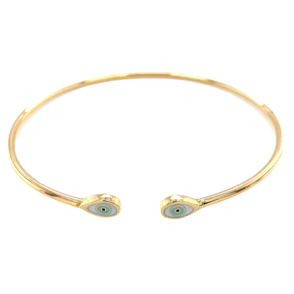 Γυναικείο βραχιόλι χειροπέδα από χρυσό 14Κ σε λουστρέ φινίρισμα με μοτίφ σχέδιο μάτι.