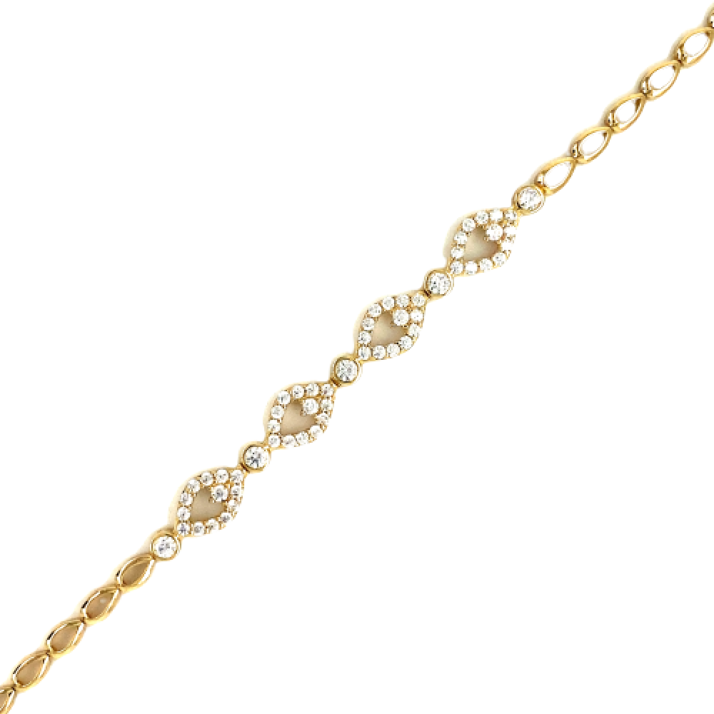 Βραχιόλι γυναικείο ιδανικό και για γάμο από χρυσό 14Κ με λευκά ζιργκόν. Συνδυάστε το με το μενταγιόν και τα σκουλαρίκια της ίδιας σειράς για μια ολοκληρωμένη εμφάνιση.
