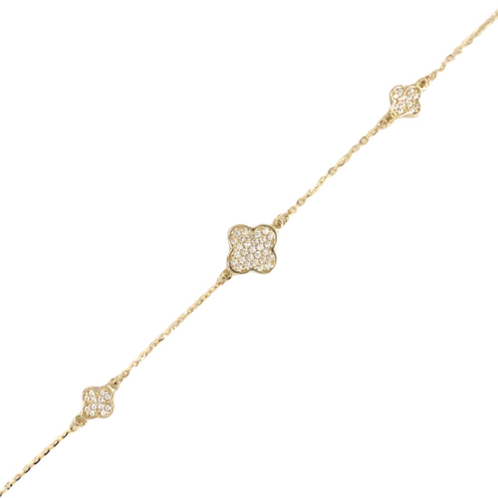 Γυναικείο βραχιόλι από χρυσό 9Κ με στοιχεία διακοσμημένα με λευκά ζιργκόν.