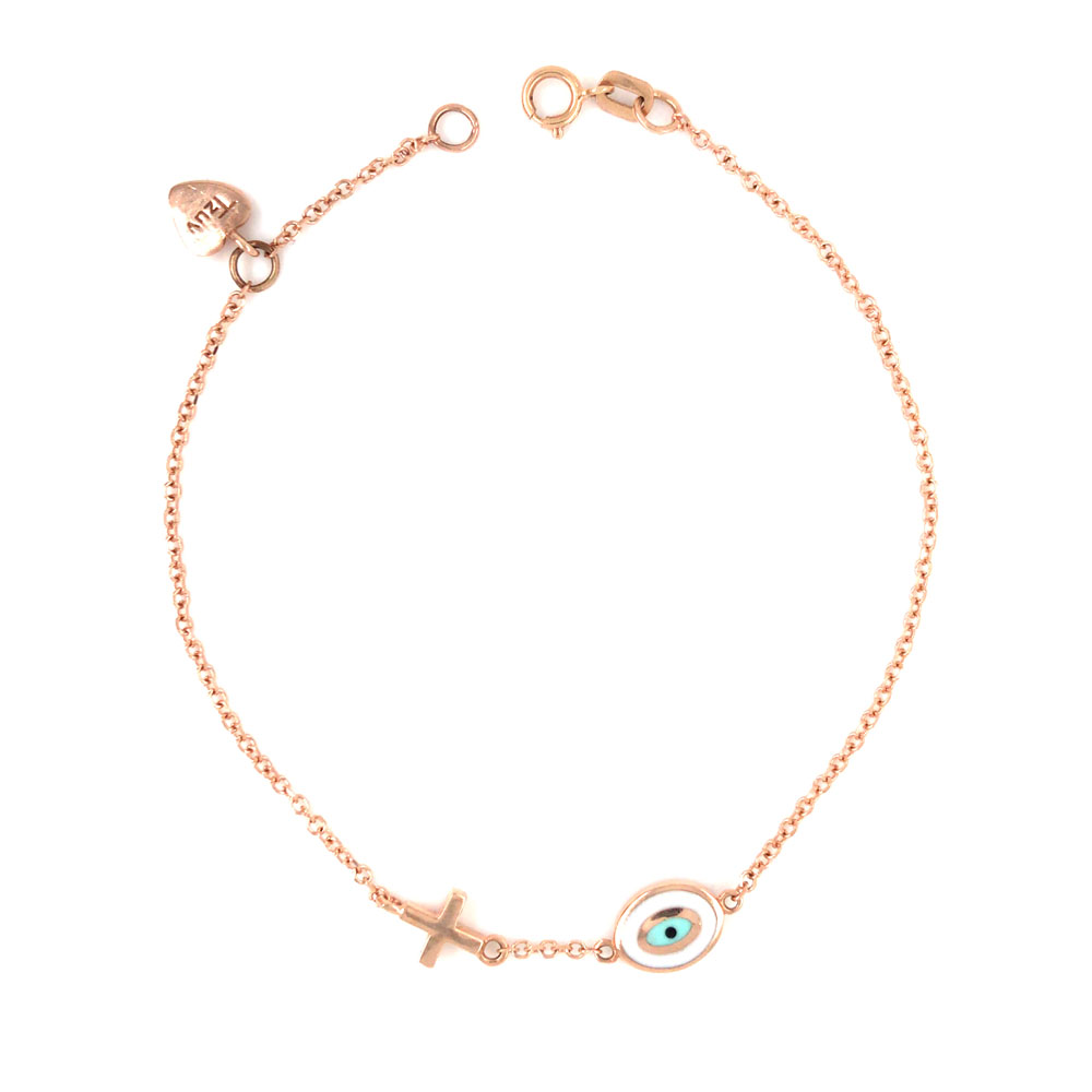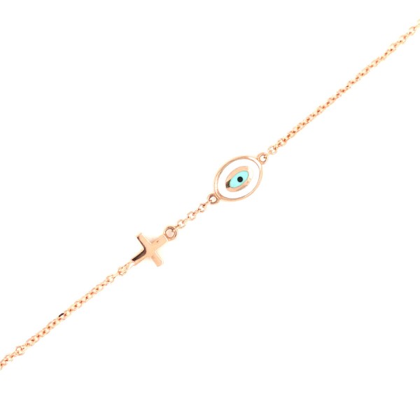 Γυναικείο βραχιόλι από χρυσό 14Κ με μάτι διπλής όψης και σταυρό.