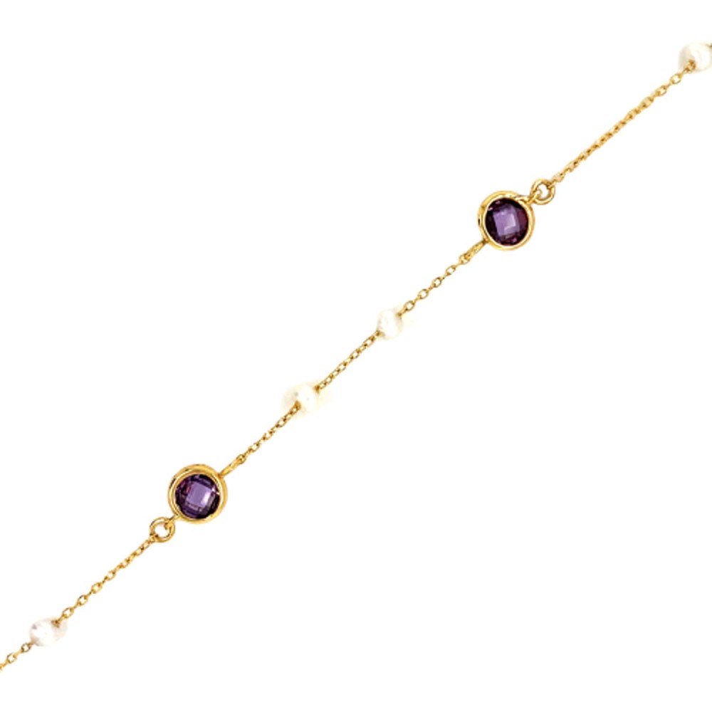 Βραχιόλι γυναικείο χειροποίητο από χρυσό 14Κ με μαργαριτάρια και πέτρες στο χρώμα του Αμέθυστου.