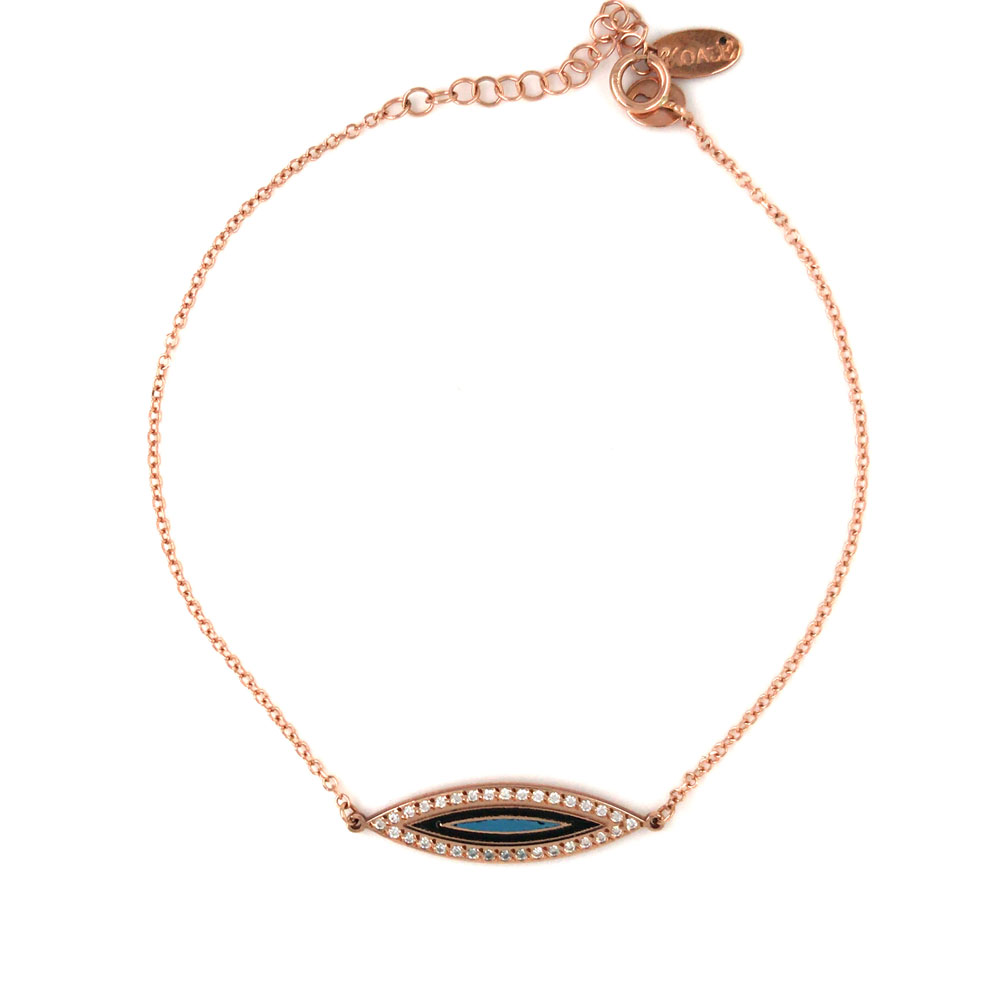 Γυναικείο Βραχιόλι από Χρυσό 9Κ με μοτίφ με σμάλτο και λευκές πέτρες ζιργκόν.