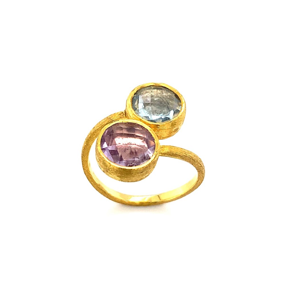Δαχτυλίδι χειροποίητο από χρυσό 14Κ με ημιπλύτιμες πέτρες. Έχει ευελιξία στο επάνω μέρος για προσαρμογή του μεγέθους.
