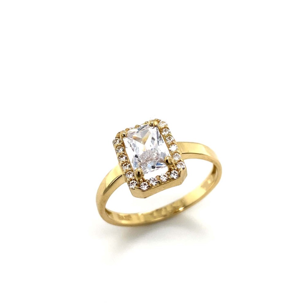 Δαχτυλίδι ροζέτα από χρυσό 14Κ με λευκή τετράγωνη πέτρα.