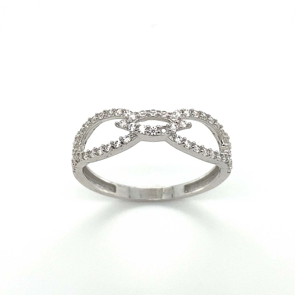 Δαχτυλίδι λευκόχρυσο 14Κ με λευκές πέτρες ζιργκόν.