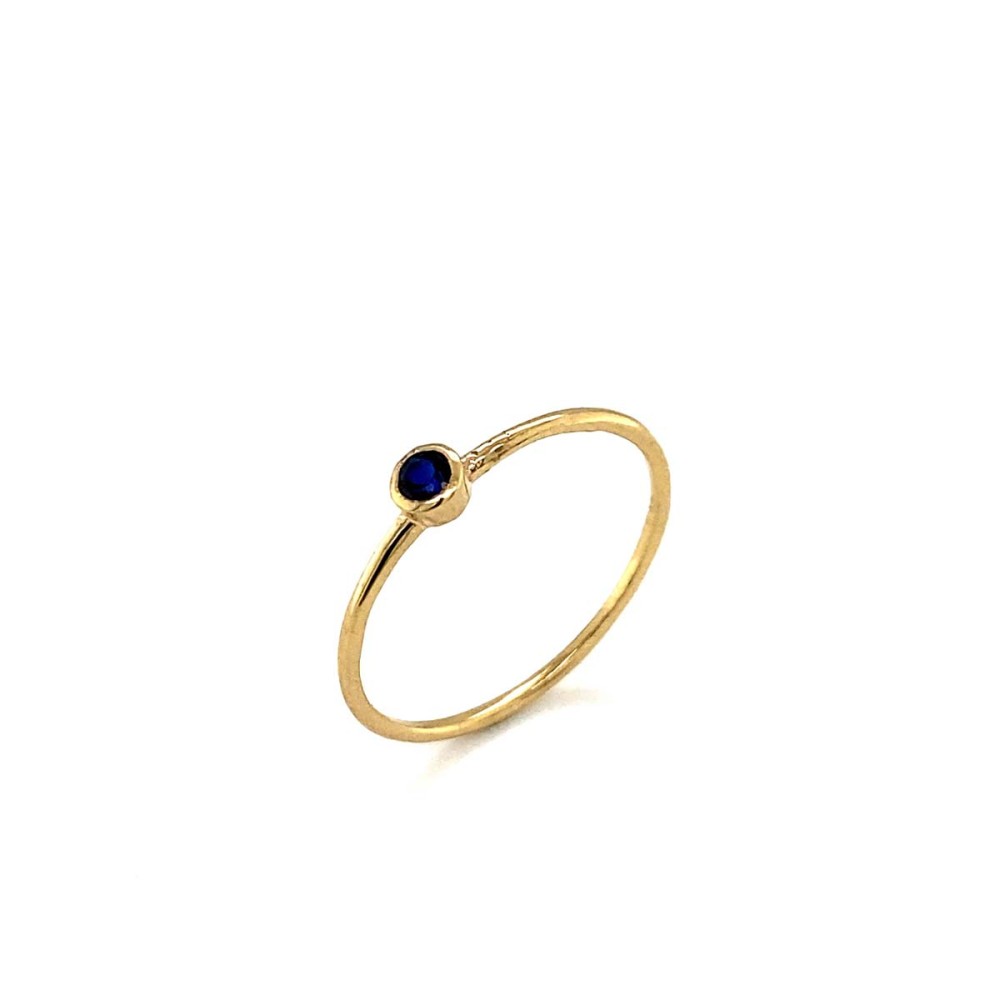 Δαχτυλίδι βεράκι από χρυσό 14Κ με στρογγυλή μπλέ πέτρα ζιργκόν.