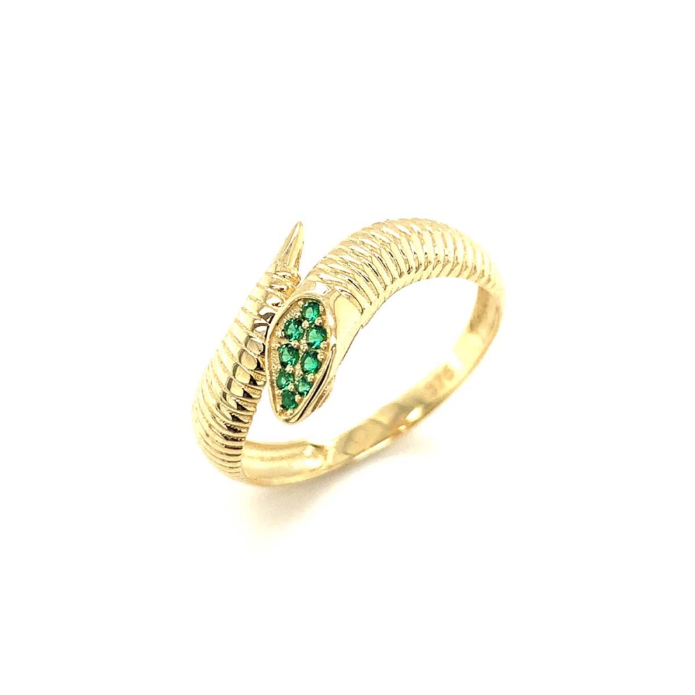 Δαχτυλίδι από χρυσό 9Κ σχέδιο φίδι με πράσινα ζιργκόν.