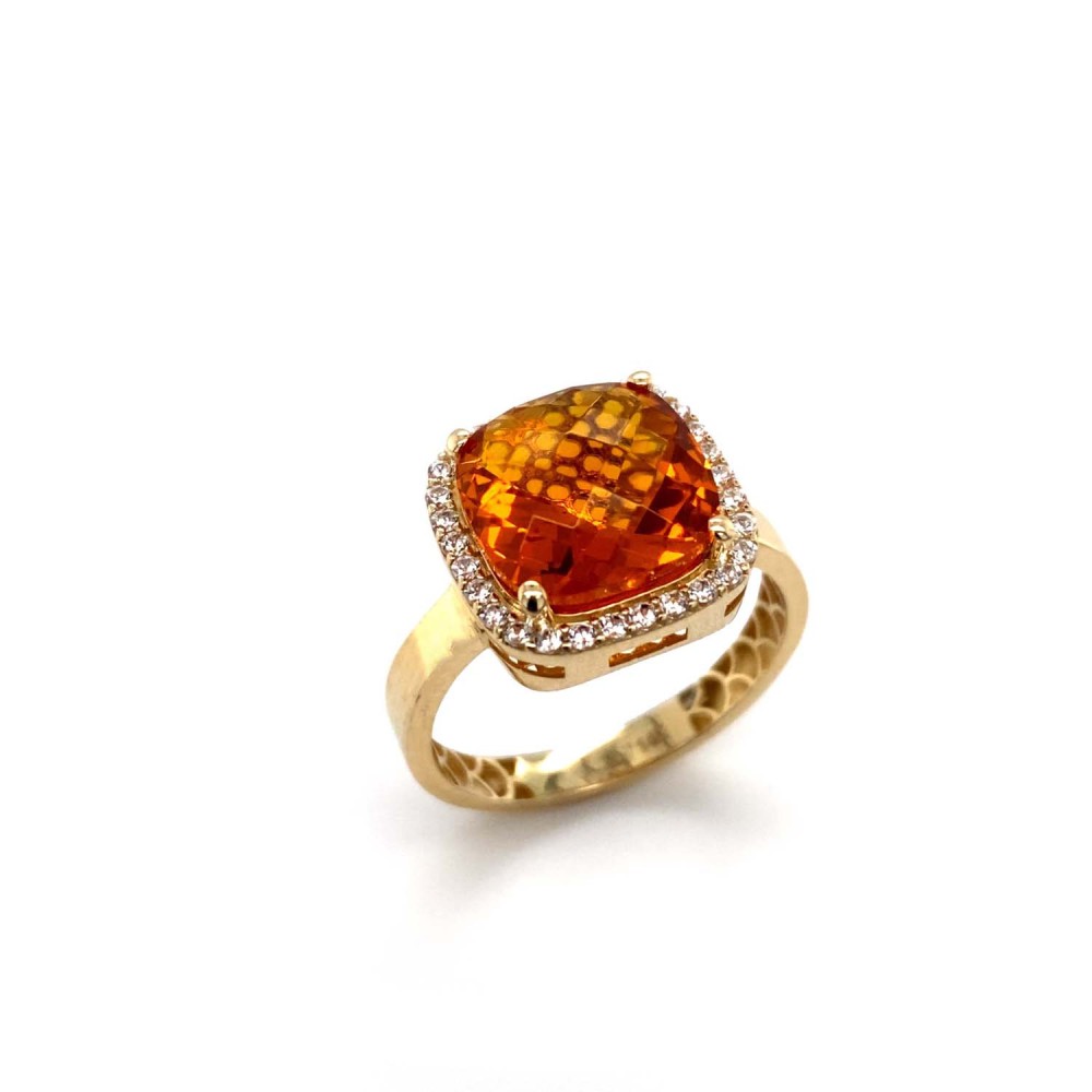 Γυναικείο δαχτυλίδι από χρυσό 14Κ με εντυπωσιακή πέτρα Citrine και λευκά ζιργκόν περιμετρικά.