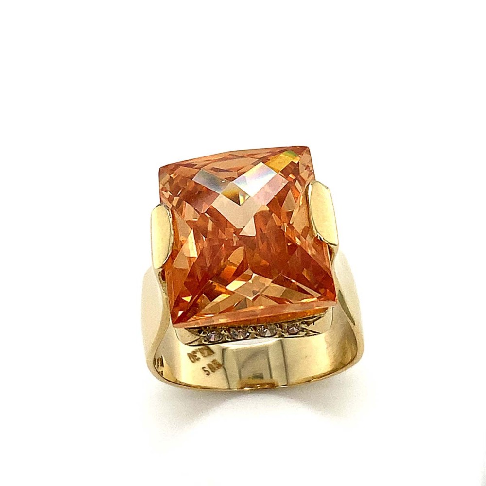 Δαχτυλίδι γυναικείο από χρυσό 14Κ με εντυπωσιακή πέτρα Citrine και λευκά ζιργκόν.