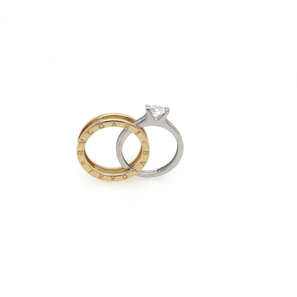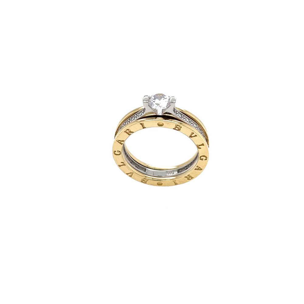 Δαχτυλίδι μονόπετρο τύπου BVLGARI σε χρυσό 14 καρατίων με ζιργκόν.