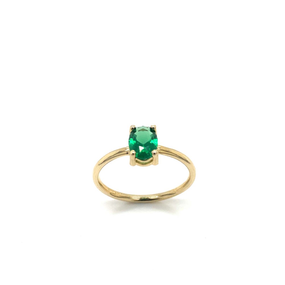 Δαχτυλίδι μονόπετρο από χρυσό 14Κ με οβάλ πράσινη πέτρα ζιργκόν.
