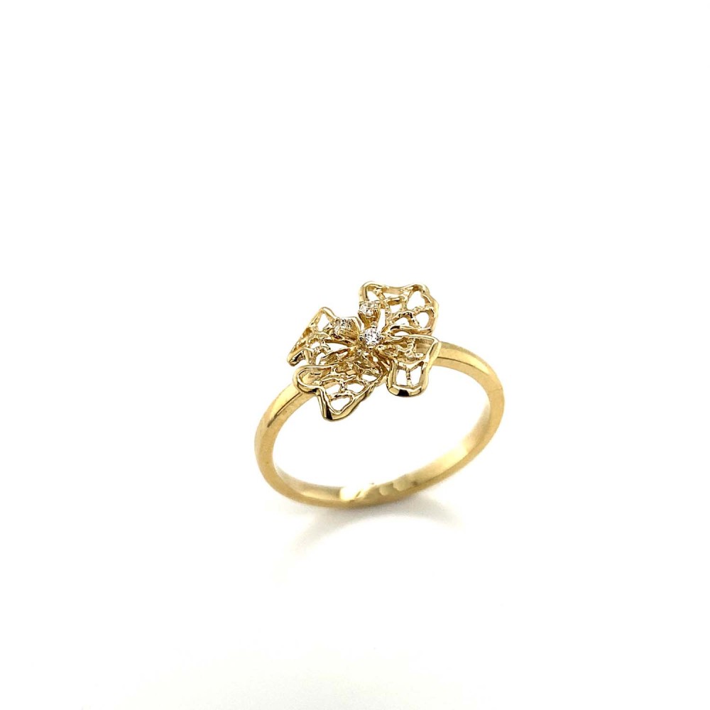 Γυναικείο δαχτυλίδι χειροποίητο από χρυσό 14Κ, ιδιαίτερο σχέδιο με λευκά ζιργκόν.
