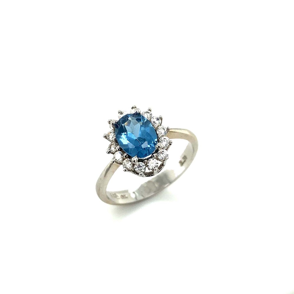 Δαχτυλίδι ροζέτα από λευκόχρυσο 14Κ με light blue πέτρα ζιργκόν.