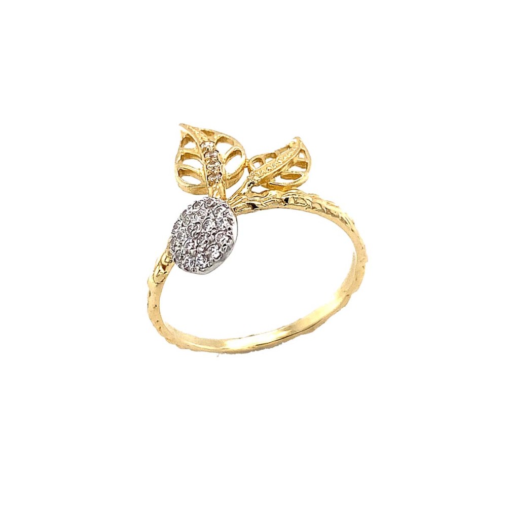 Δαχτυλίδι από χρυσό 14Κ σχέδιο φυλλαράκια με λευκά ζιργκόν.