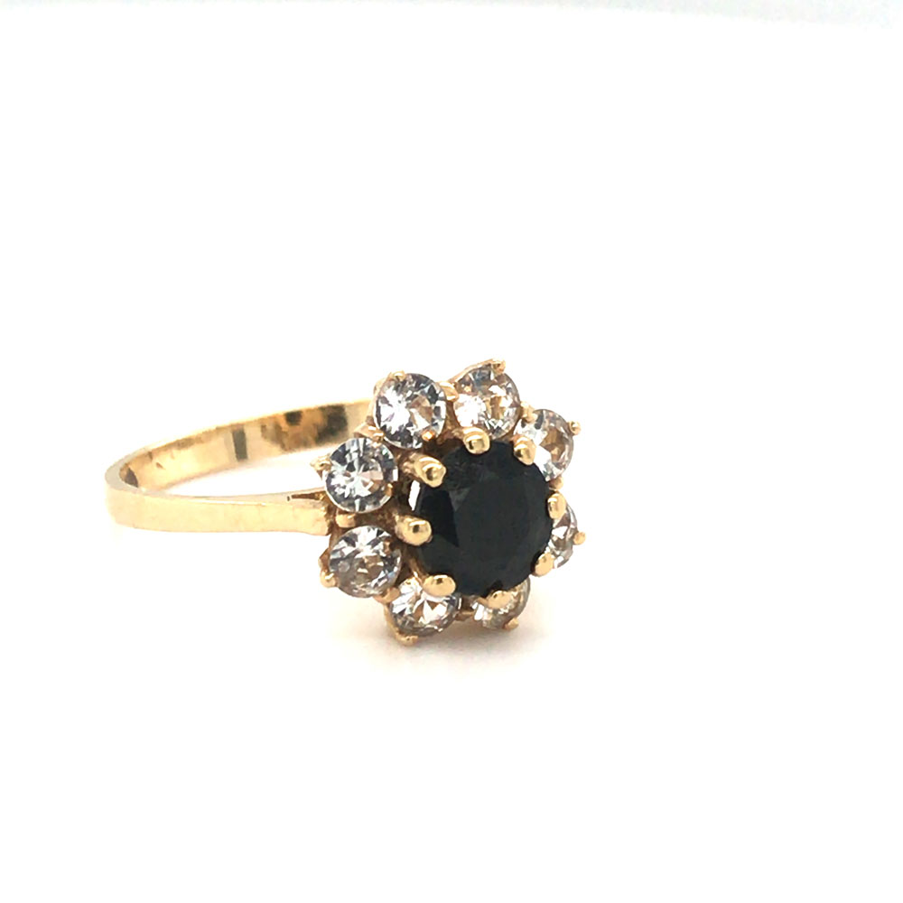 Δαχτυλίδι από κίτρινο χρυσό 14 με μπλέ σκούρο και λευκά ζιργκόν.