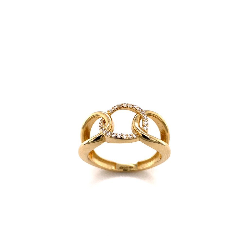 Γυναικείο δαχτυλίδι από χρυσό 14Κ σχέδιο αλυσίδα με λευκά ζιργκόν διακοσμημένο.