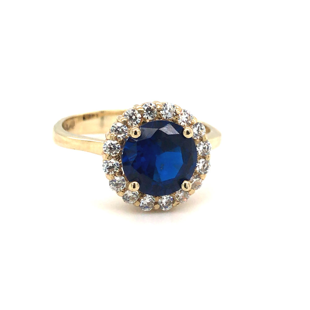 Δαχτυλίδι από χρυσό 14Κ με μπλέ και λευκές πέτρες ζιργκόν.