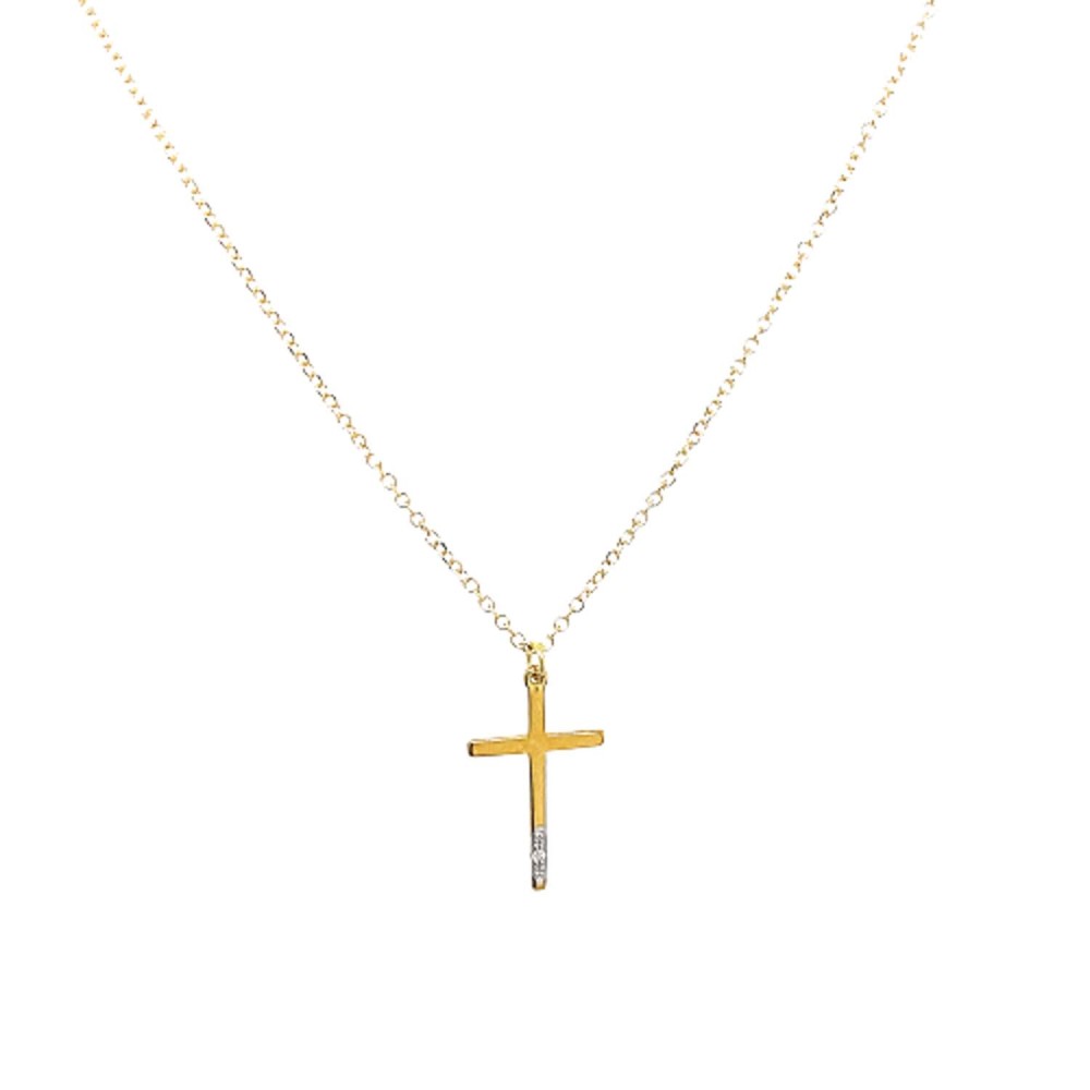Γυναικείο κολιέ με Σταυρουδάκι από χρυσό 14Κ και 3 διαμαντάκια συνολικού βάρους 0,003ct.