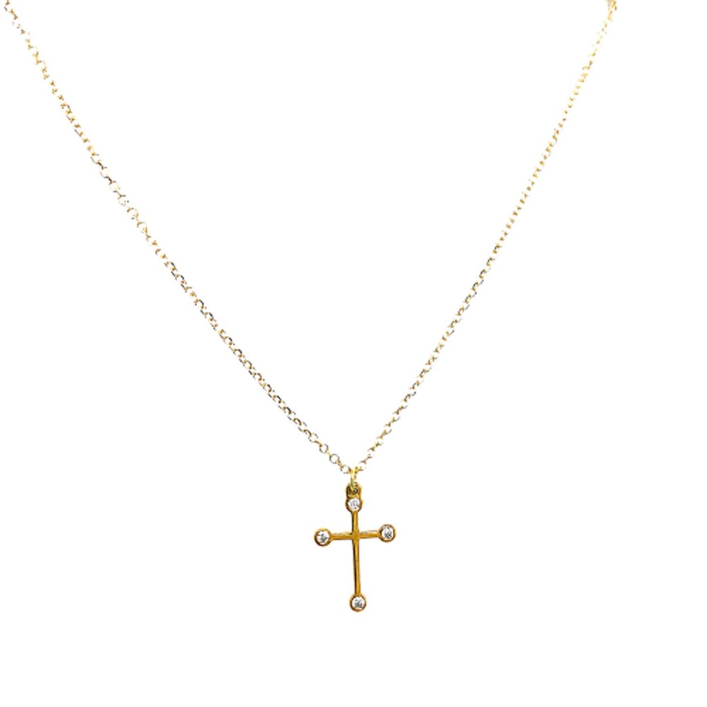 Γυναικείο κολιέ με Σταυρουδάκι από χρυσό 14Κ και 4 διαμάντια συνολικού βάρους 0,024ct.