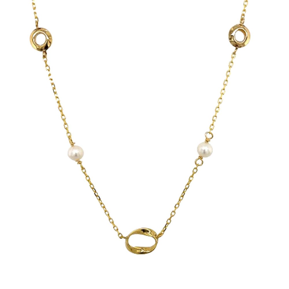Γυναικείο κολιέ από χρυσό 14 καρατίων με μαργαριτάρια και χρυσά στοιχεία. Συνδυάστε με το βραχιόλι και σκουλαρίκια για μια ολοκληρωμένη εμφάνιση.