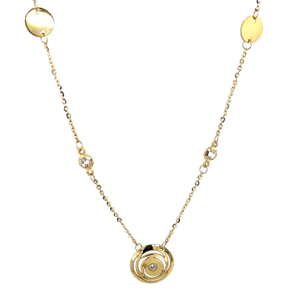 Γυναικείο κολιέ από χρυσό 14Κ με κρεμαστό στρογγυλό στοιχείο με ζιργκόν.