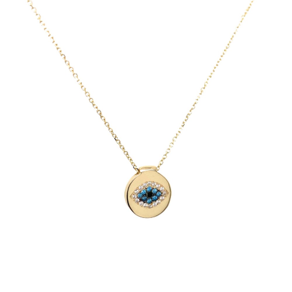 Γυναικείο κολιέ μάτι, μοντέρνο σχέδιο από χρυσό 14Κ με ζιργκόν.