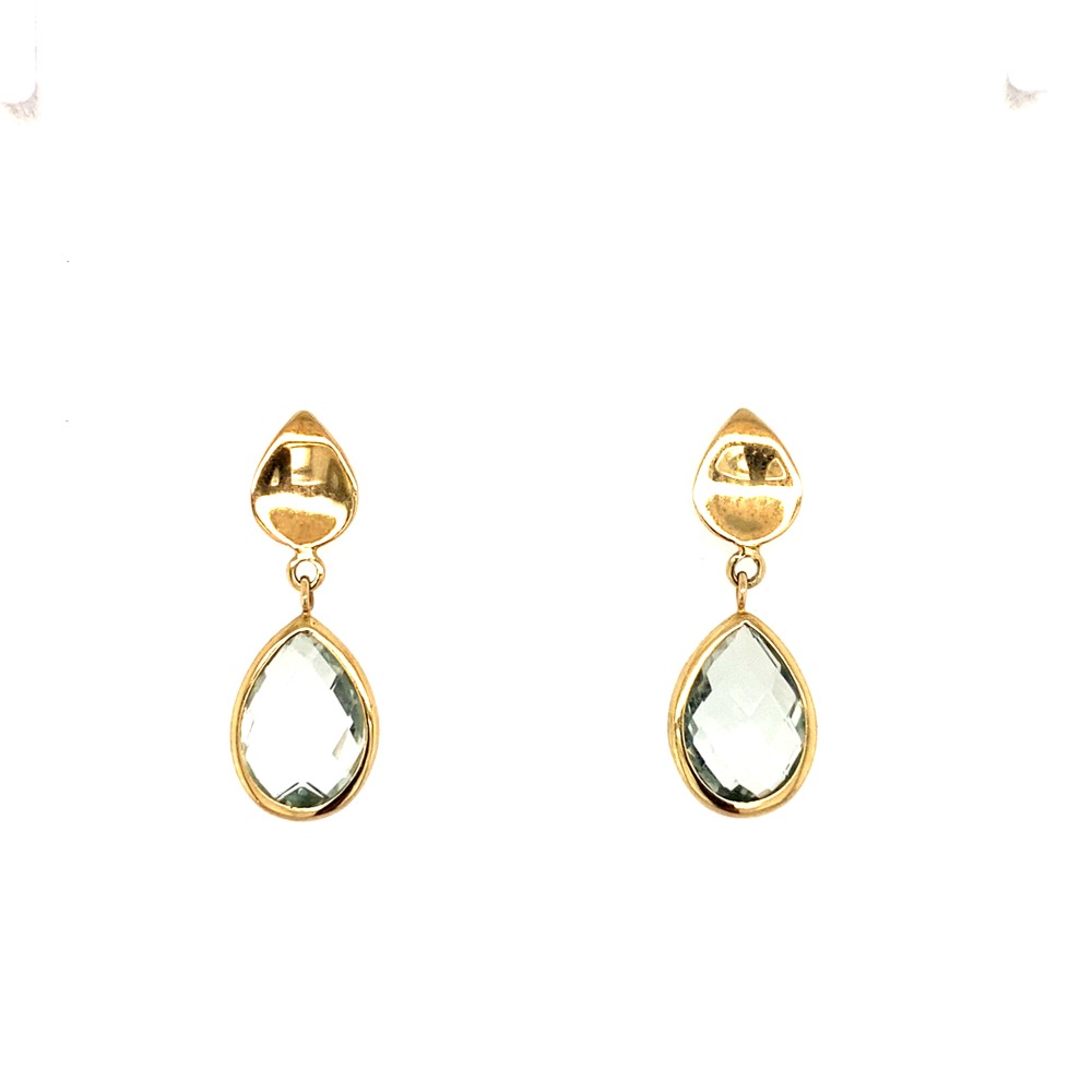 Σκουλαρίκια γυναικεία κρεμαστά από χρυσό 14 καρατίων με γαλάζιο ζιργκόν.