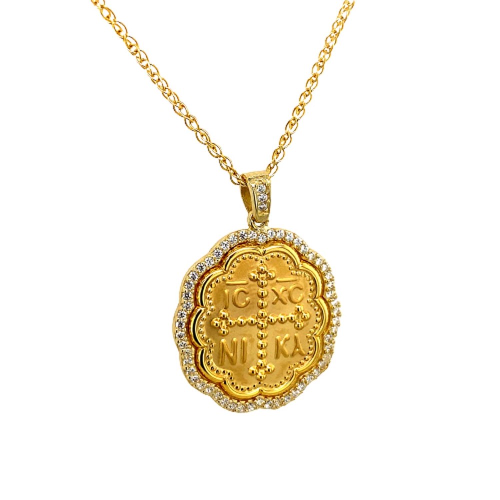 Φυλαχτό Κωνσταντινάτο μενταγιόν από χρυσό 14Κ με λευκά ζιργκόν.
