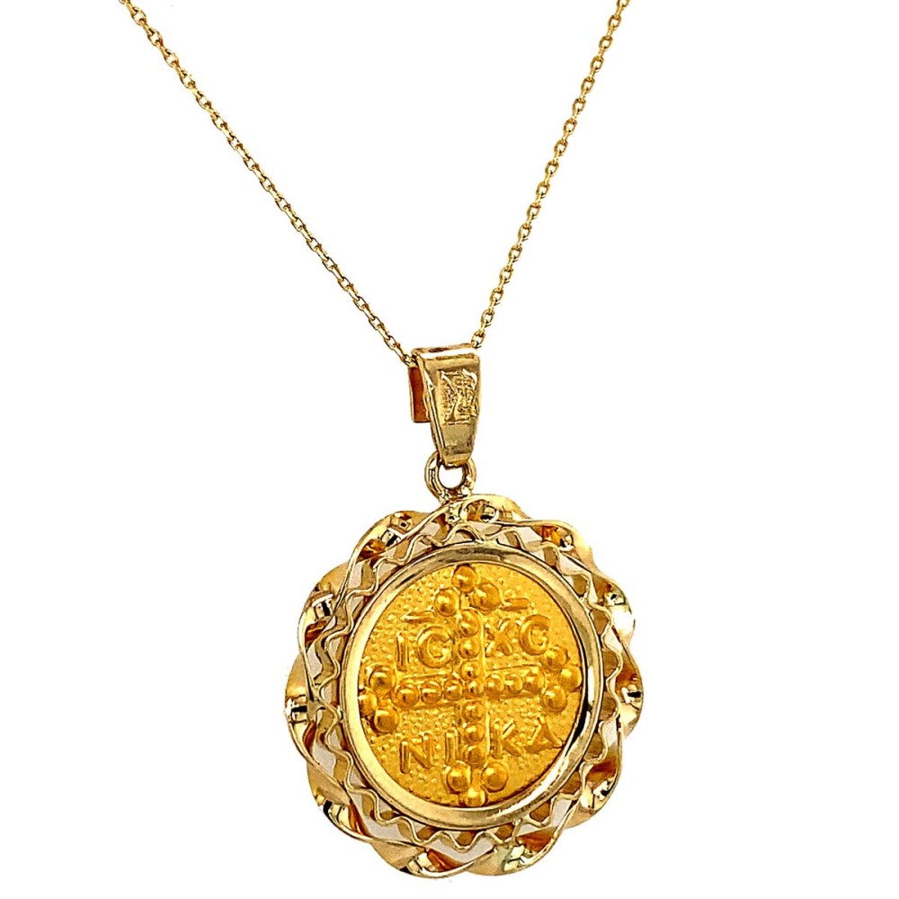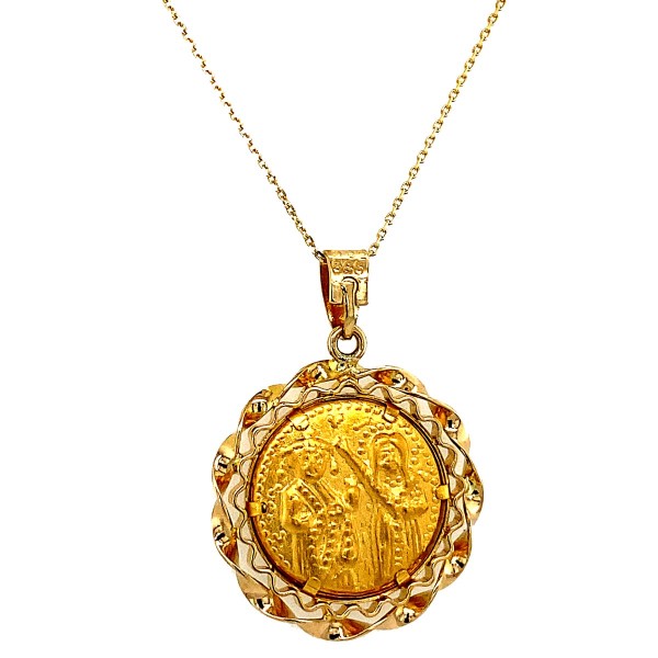 Κωνσταντινάτο από χρυσό 14Κ διπλής όψης με στριφτό εντυπωσιακό στεφάνι περιμετρικά.