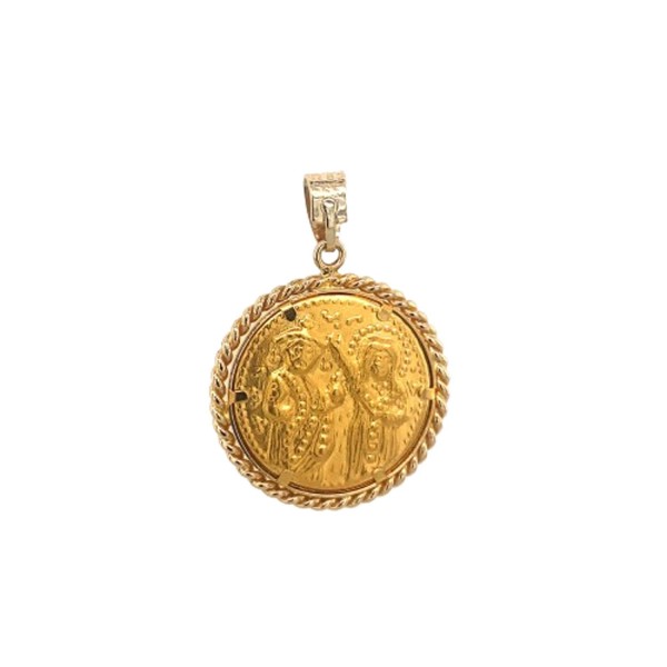 Μενταγιόν Κωνσταντινάτο διπλής όψης από χρυσό 14 καρατίων.