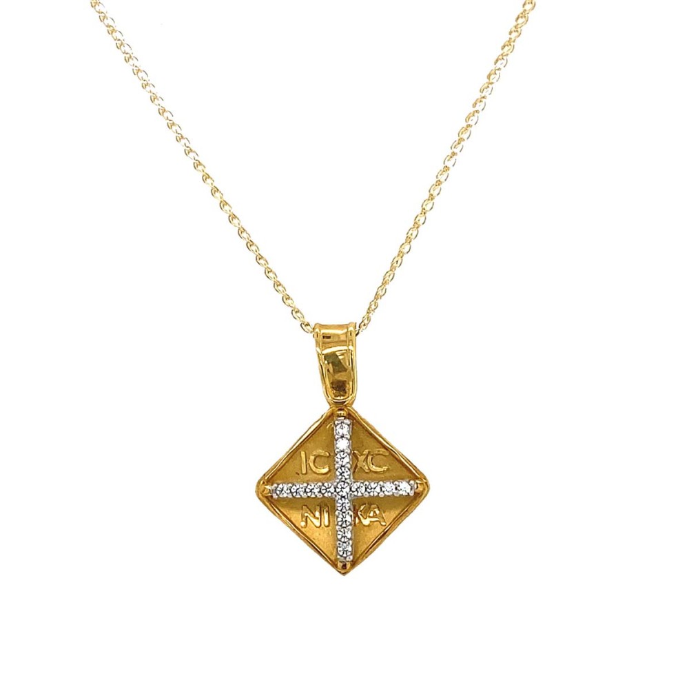 Κωνσταντινάτο μενταγιόν από χρυσό 9Κ με λευκές πέτρες ζιργκόν.