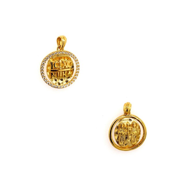 Κωνσταντινάτο μενταγιόν από χρυσό κ14 με λευκά ζιργκόν περιμετρικά.