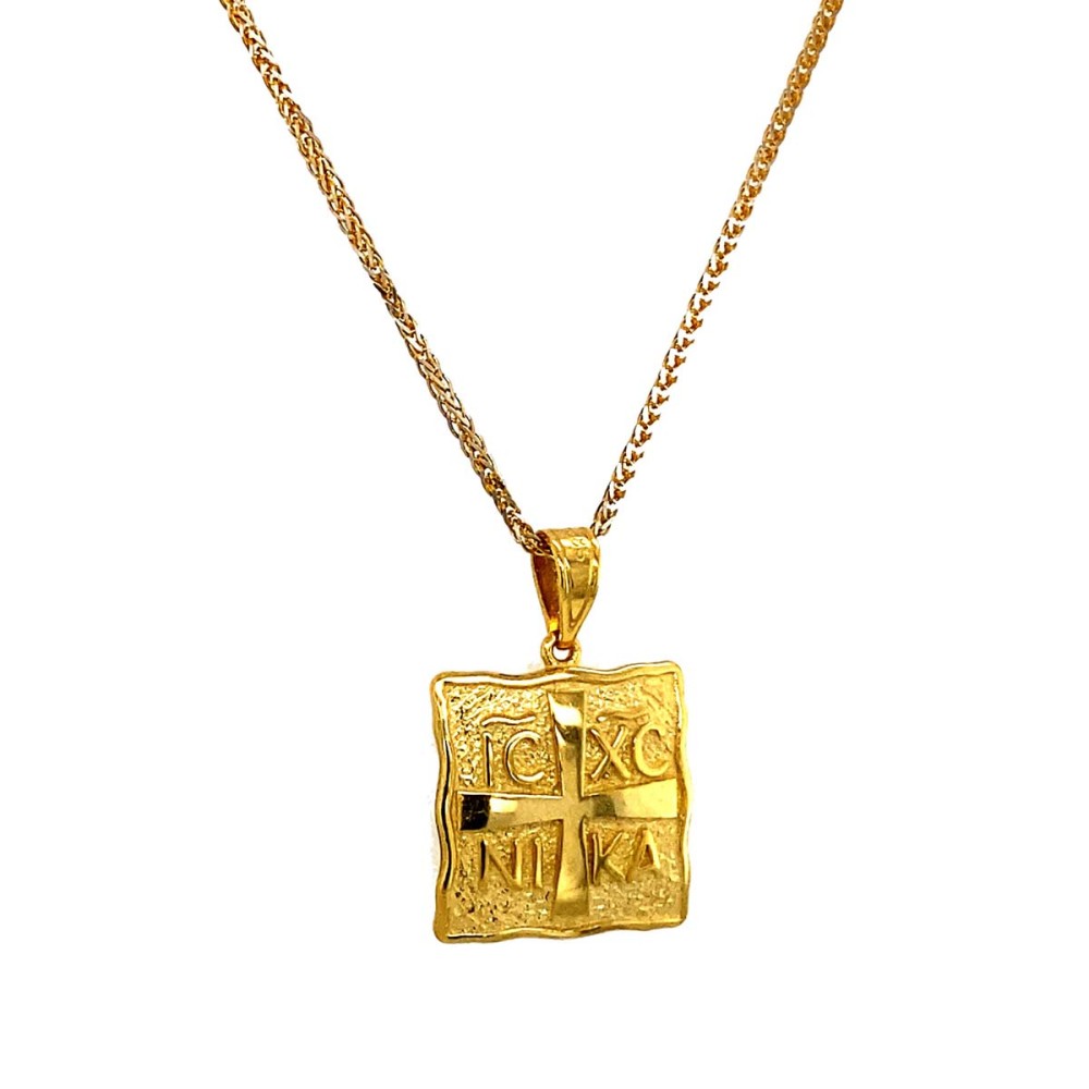 Κωνσταντινάτο μενταγιόν σχέδιο τετράγωνο από χρυσό 14Κ με λουστρέ επιφάνεια.