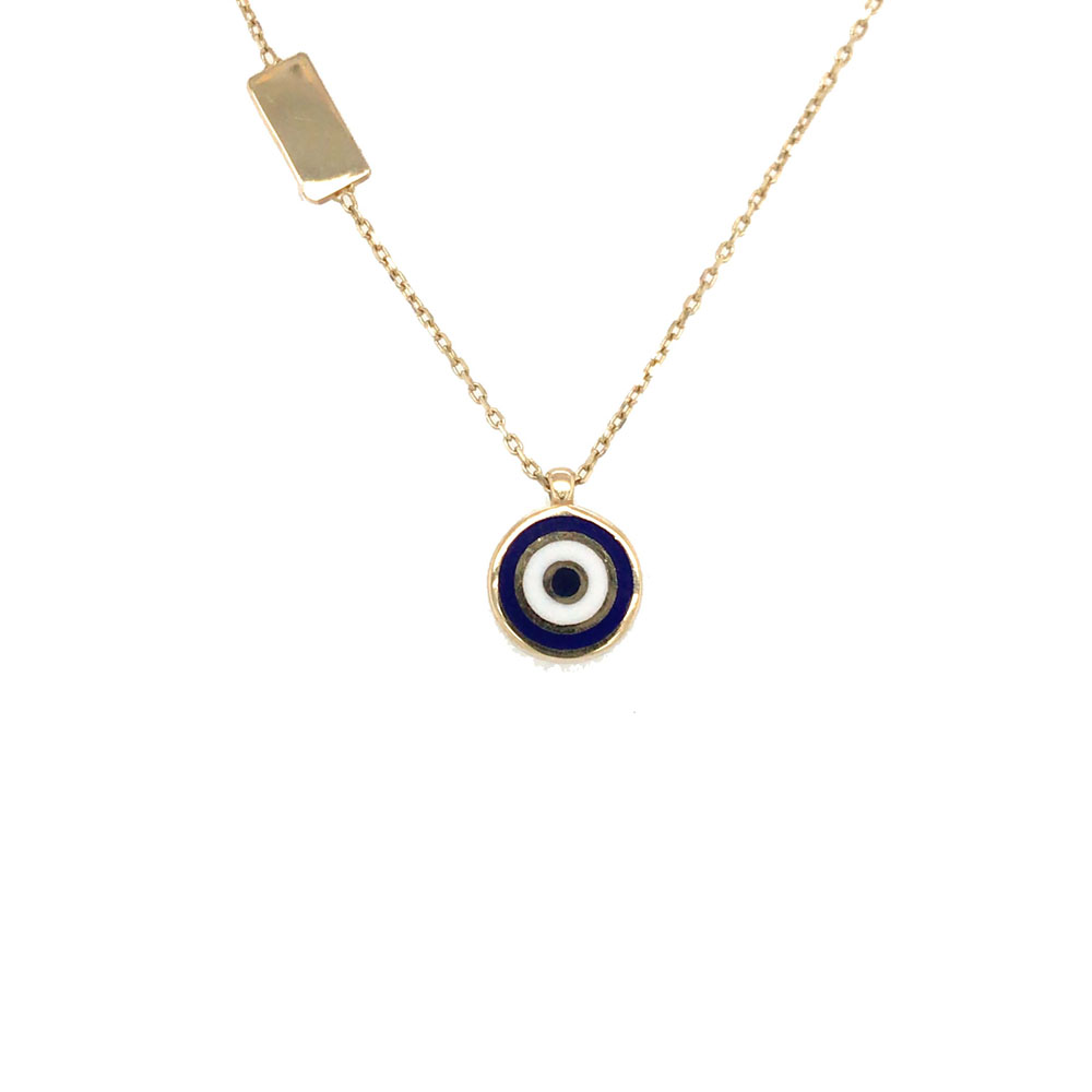 Mήκος αλυσίδας 42cm με προέκταση 3cm, Bάρος 2.6gr, Μεταγιόν διπλής όψης με σμάσλτο μπλε και γαλάζιο με αλυσίδα, Μέταλλο χρυσός 14κ, Χρώμα κίτρινο