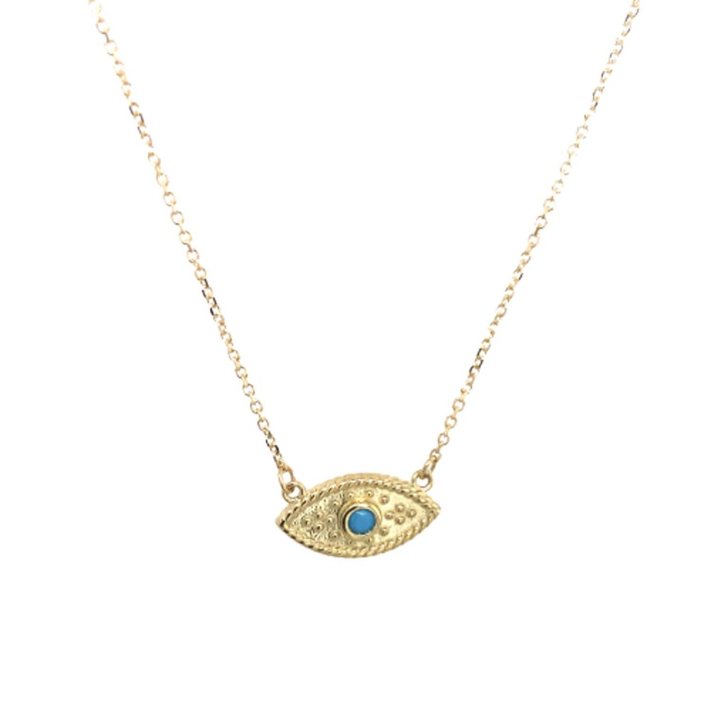 Γυναικείο μενταγιόν μάτι από χρυσό 9Κ με πέτρα τυρκουάζ πέτρα στο κέντρο.