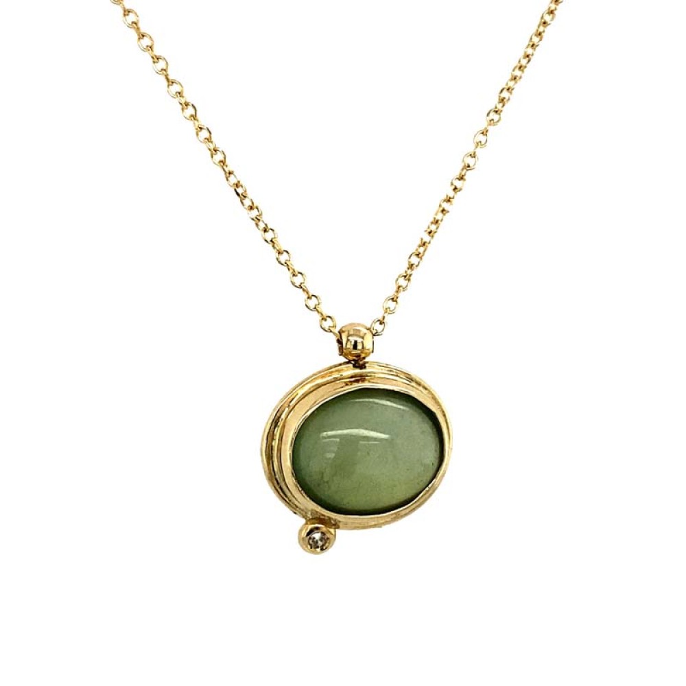 Μενταγιόν γυναικείο από χρυσό 14Κ με ημιπολύτιμη πε΄τρα πράσινου αμέθυστου και μπριγιάν.