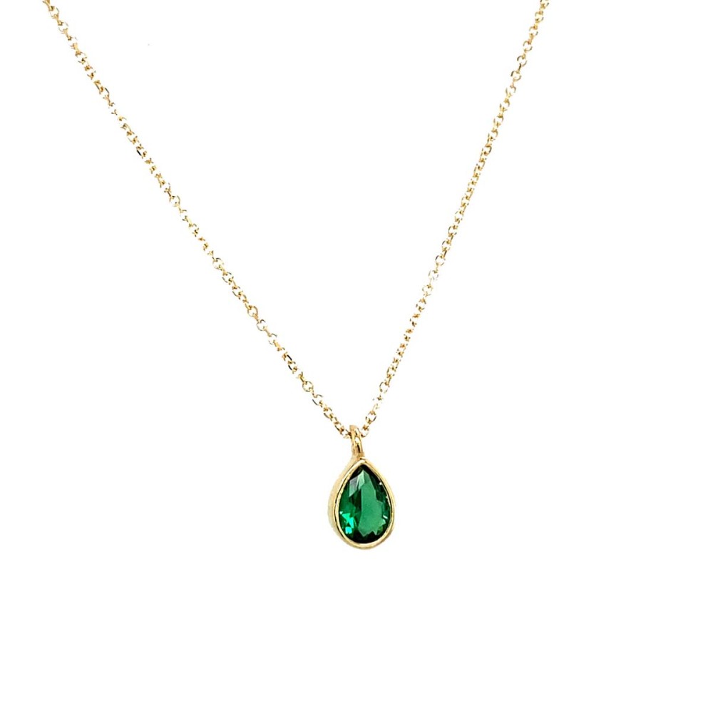 Μενταγιόν γυναικείο από χρυσό 14Κ κρεμαστό στοιχείο σταγόνα με πράσινη πέτρα ζιργκόν.