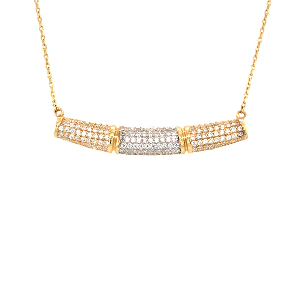 Μενταγιόν από κίτρινο χρυσό 14Κ με σχέδιο κρεμαστή μπάρα με λευκές πέτρες ζιργκόν.